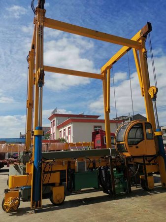 目前,輪胎式集裝箱龍門(mén)吊起重量大多是按標(biāo)準(zhǔn)箱20尺和40尺設(shè)定的,跨距為6列集裝箱和一條底盤(pán)車(chē)道的寬度,起升高度一般為堆4過(guò)5,大概11-12米。輪胎式集裝箱龍門(mén)吊可以有效利用堆場(chǎng),堆場(chǎng)建設(shè)費(fèi)用相對(duì)較低,機(jī)動(dòng)靈活,通用型強(qiáng),它不僅能前進(jìn)、后退,而且還有轉(zhuǎn)向裝置,通過(guò)車(chē)輪旋轉(zhuǎn),能從一個(gè)箱區(qū)轉(zhuǎn)移到另一個(gè)箱區(qū)進(jìn)行作業(yè)。